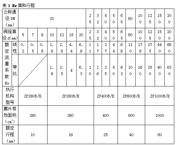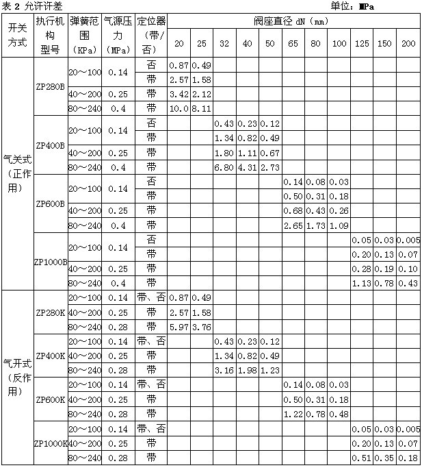 注 1)對于ZXPW型單座波紋管密封調(diào)節(jié)閥,最大允許壓差為1.0MPa,表中數(shù)據(jù)若數(shù)值小于1.0MPa則不變,