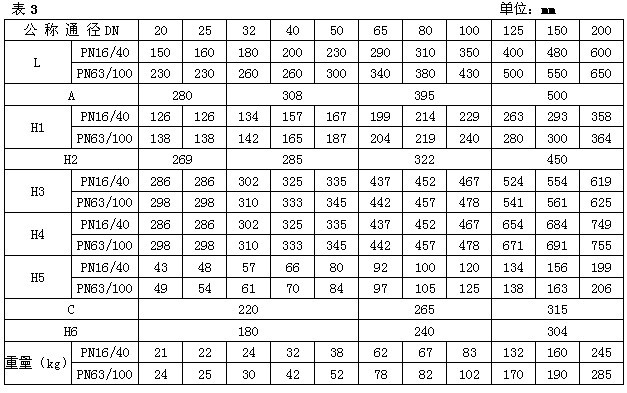 64;閥體口徑范圍DN20~200。適用流體溫由-200℃~560℃范圍內(nèi)多種檔次。泄漏量標(biāo)準(zhǔn)有IV級或VI級。流量特性為