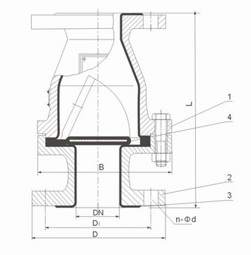 安裝在垂直放置的管路中。對于水平放置的管路,垂直放置對夾式止回閥;