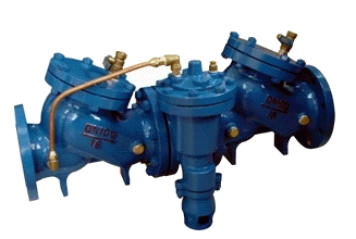 HS41XA帶過(guò)濾防污隔斷閥由兩個(gè)隔開(kāi)的止回閥和一個(gè)液壓傳動(dòng)到泄水閥組成,第一個(gè)止回閥閥體內(nèi)裝有過(guò)濾網(wǎng)。由于止回閥的局部水頭損失,中間腔內(nèi)的壓力始終低于入水口的壓力。這個(gè)壓差驅(qū)使泄水閥處于關(guān)閉狀態(tài),管路正常供水。在壓力異常時(shí),(即出口端壓力高于中堅(jiān)腔),即使兩個(gè)止回閥都不能反向密封,安全泄水閥也能自動(dòng)開(kāi)啟將倒流水泄空,并形成空氣隔斷,保證上游供水衛(wèi)生安全。