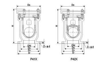 P41X快速排氣閥主要外型連接尺寸參數(shù)