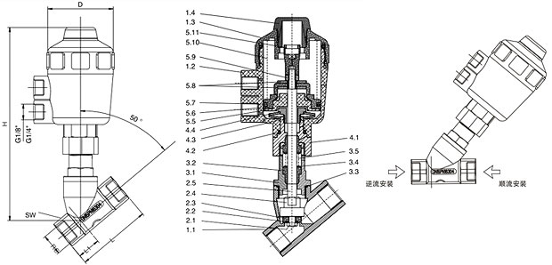 順流安裝/逆流安裝